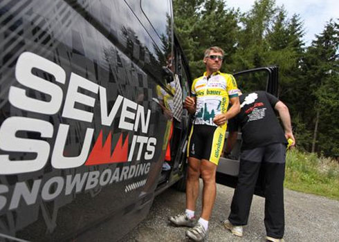 Großvenediger (3.662m), Großglockner (3.798m), Dachstein (2.995m), Geschriebenstein (884m), Hermannskogel (542m), Schneeberg (2.076m). Der 3-fache Race across Amerika Sieger bewältigt die Wege zwischen den Bergen (1.050km und 20.000hm) natürlich mit dem Fahrrad.